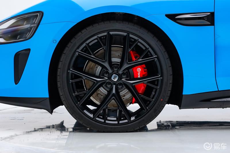侧面来看,新车延续了溜背式的动感造型,配合富有层次感的线条,带来很强的视觉冲击力。此外,新车搭载了全新造型的20英寸轮毂,并配备了红色刹车卡钳。官方表示,新一代小米SU7将全系标配前窄后宽轮胎(前245mm/后 265mm) 以及前四活塞固定卡钳。同时,新车延续了半隐藏式门把手设计,并采用更加动感的黑色外后视镜。